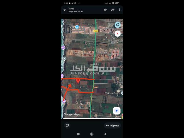 أرض فلاحية خصبة مساحتها 9.30 هكتار تحتوي على بئر وطاقة شمسية و goûtte a goûtte ومنزل وبعض من الاشجار ومزروعة (بطاطس) وتحتوي ايضا على بعض من حيونات .على شكل فرمة .سوف تباع بكل ما يوجد فيها .موقعها على طريق بركان أكليم. للإستفسار.المرجو إتصال بالرقم :07.24.05.07.22 مرحبا بالجميع