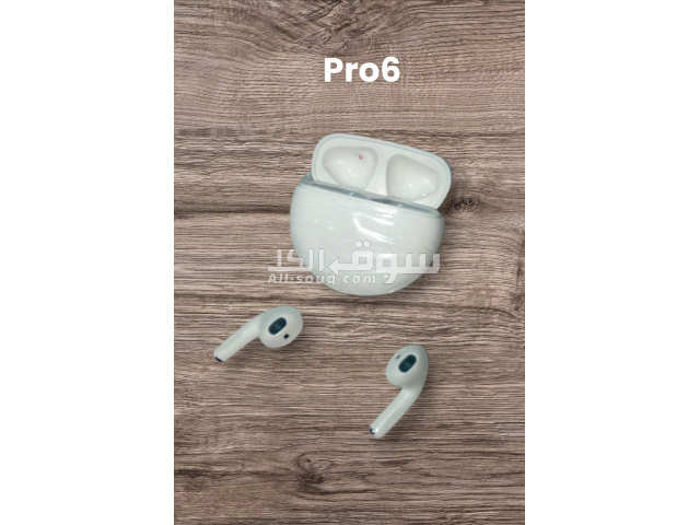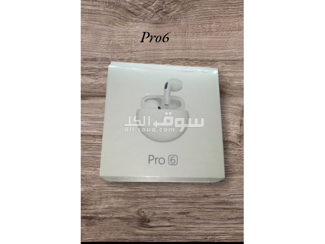 "سماعات بلوتوث PRO6، صوت نقي، تصميم أنيق، تقنية عزل الضوضاء، عمر بطارية طويل، اقتران سريع، تحكم باللمس، سماعات لاسلكية، جودة عالية، تجربة استماع استثنائية."
